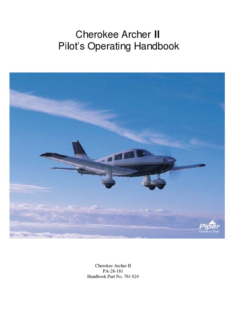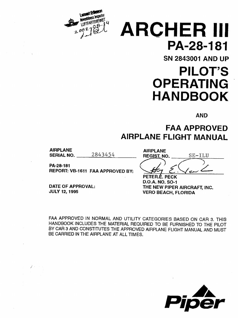 Piper Archer III PA28181 SN 2843001 and UP Pilot's Operating Handbook