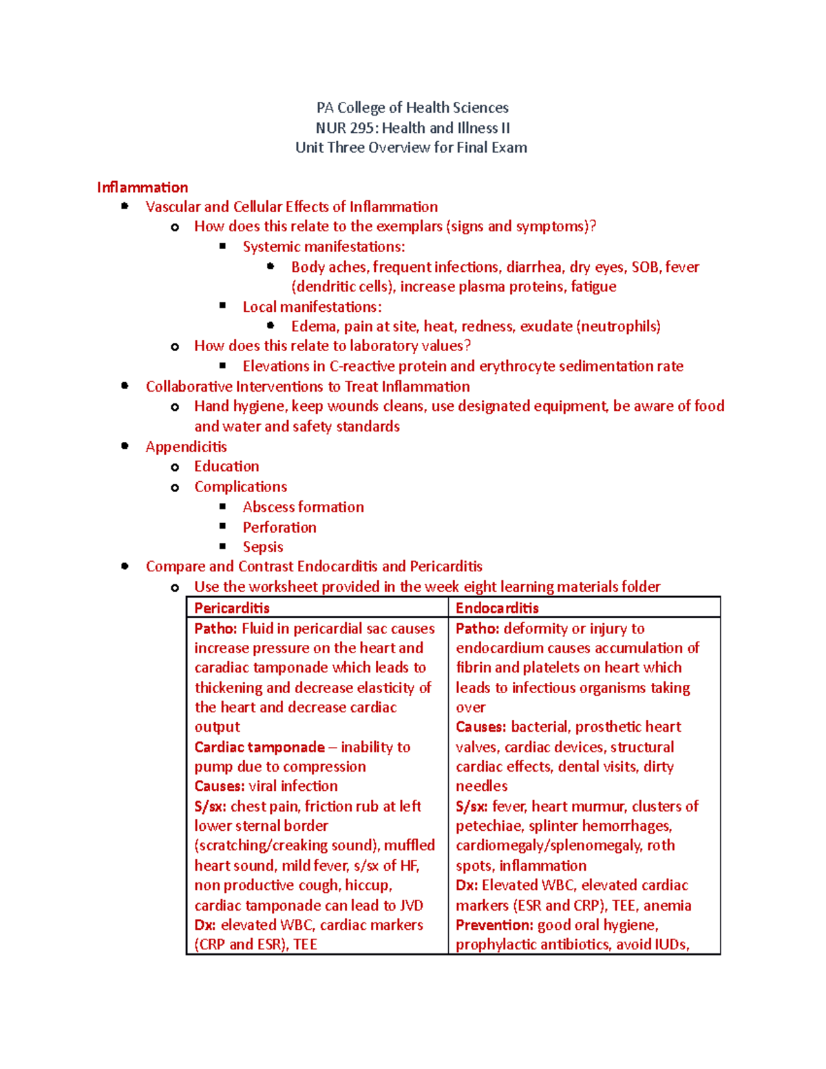 Study Guide for Unit Three PA College of Health Sciences NUR 295
