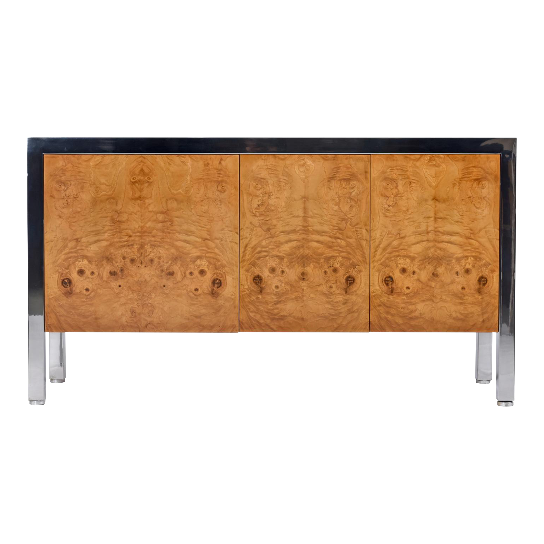 Pace Collection 8800 Bleached Burl and Chrome Sideboard by Irving M