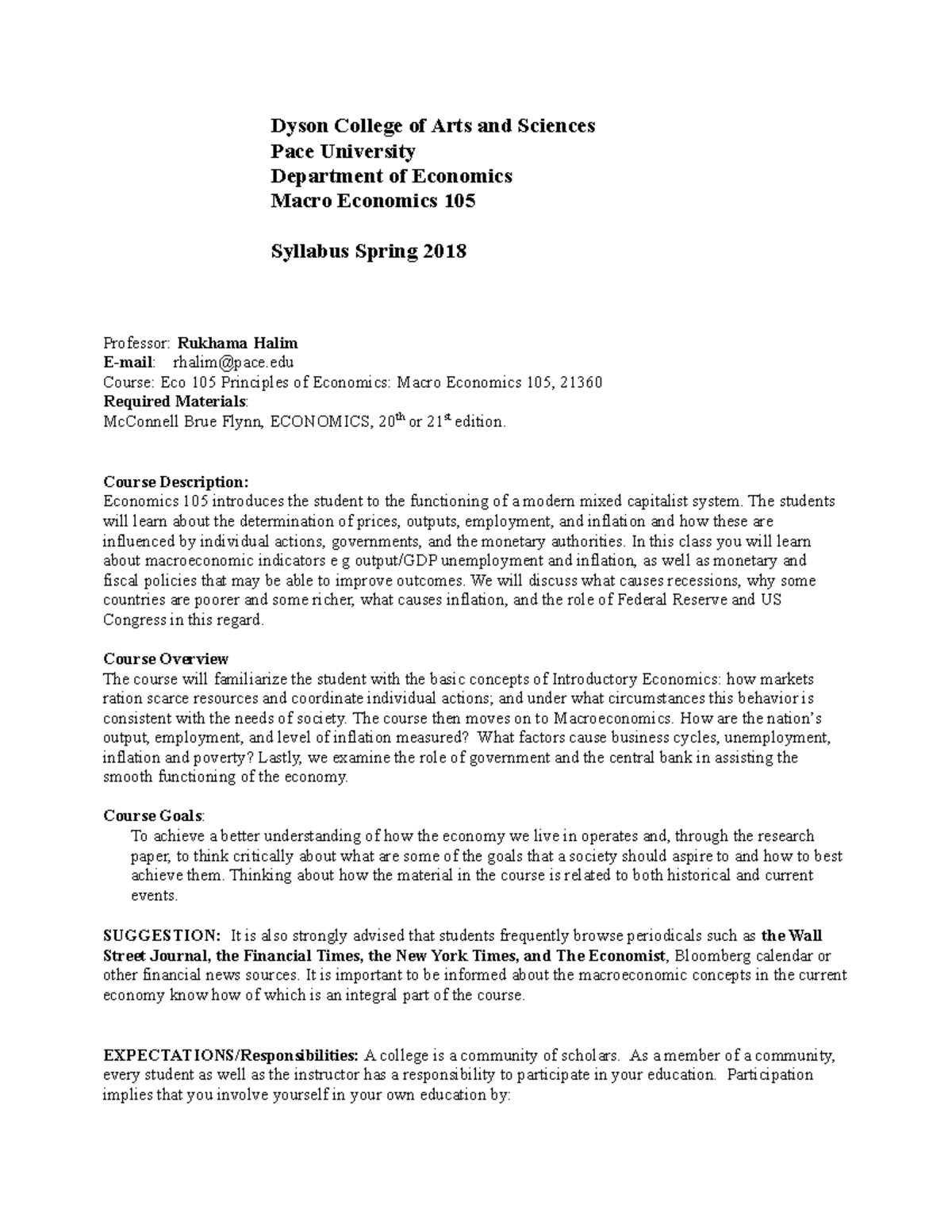 Pace university spring 2018 macro Dyson College of Arts and Sciences