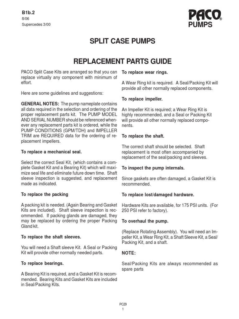 Iom Paco Pumps LF Parts PDF Pump Bearing (Mechanical)