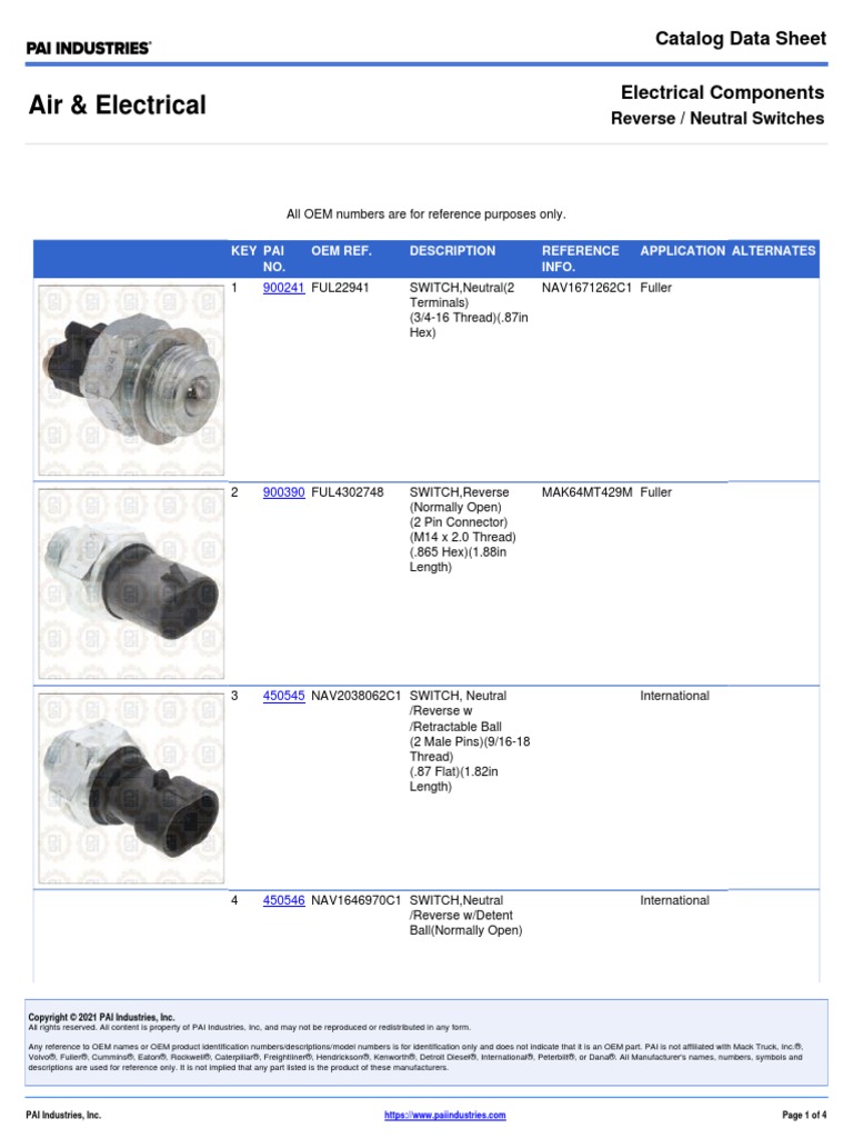 Switch de Retroceso Pai Catalog Sheet 8244 PDF Electrical