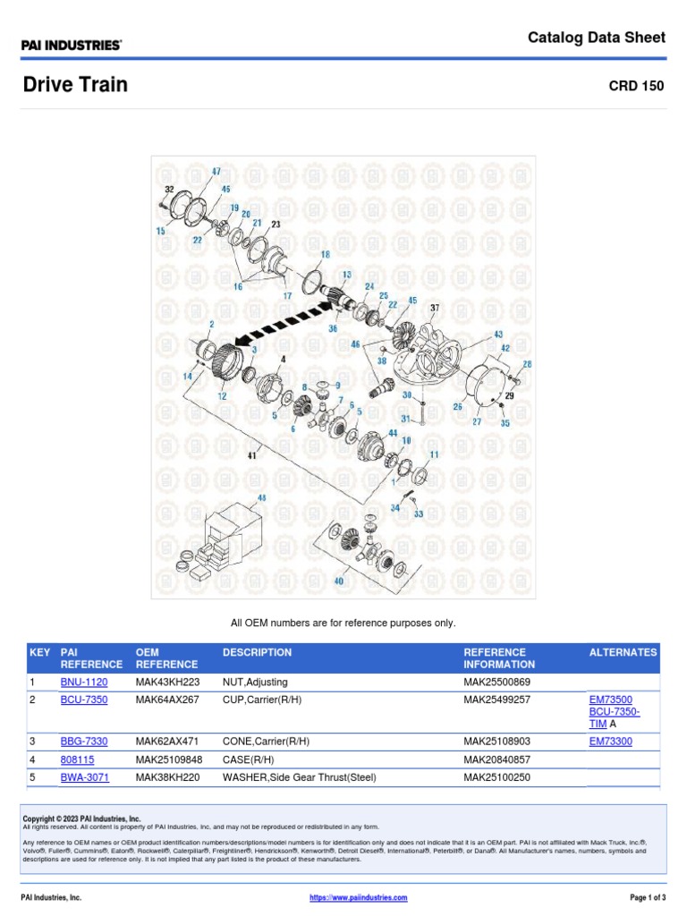 Pai Catalog Sheet 1203 CRD150 PDF Gear Vehicles