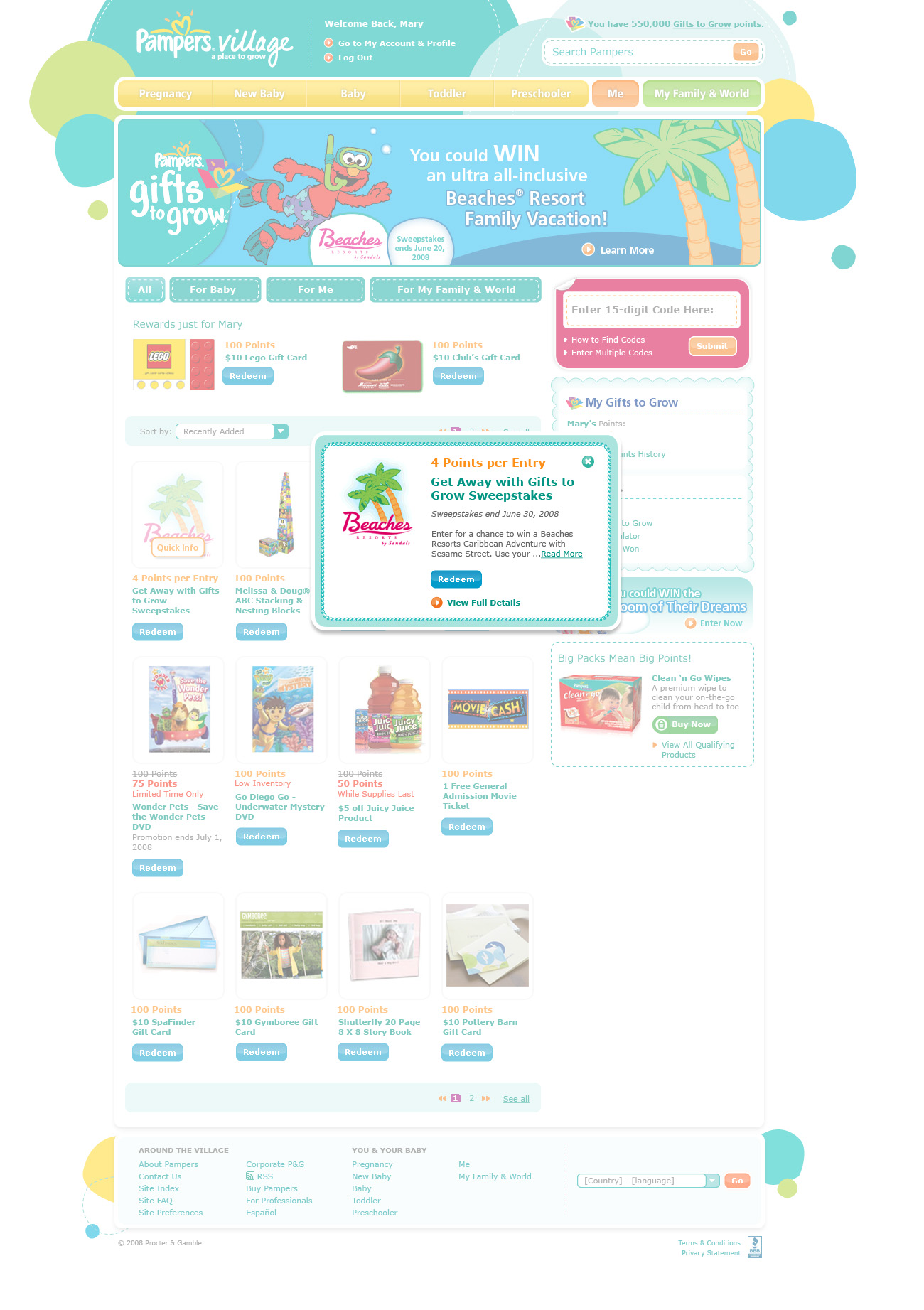 How do I redeem my Pampers Club points for rewards? Pampers Club Help