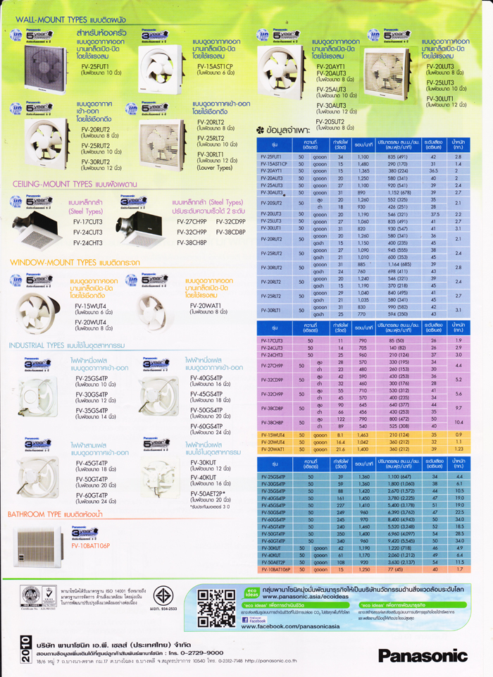 แคตตาล็อก Panasonicพัดลมระบายอากาศ Ventilating Fan Pjrelectric