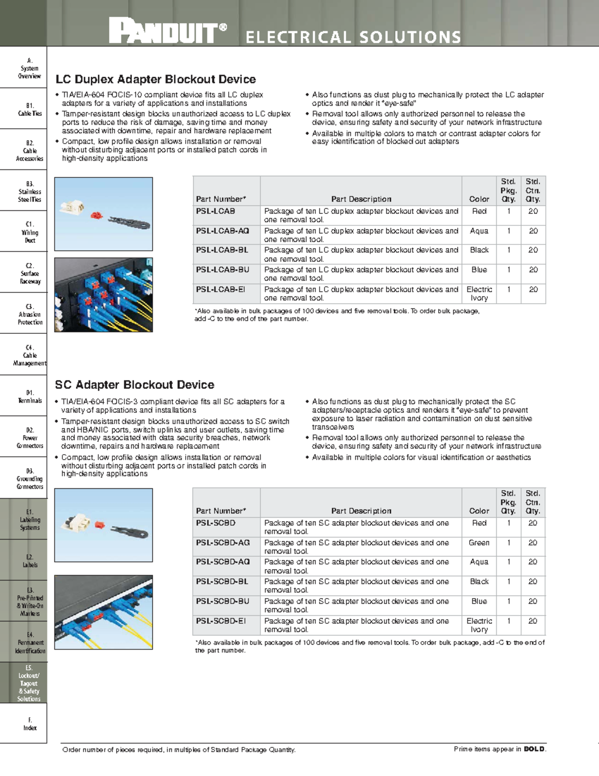 Catalog Cut Sheet Catálogo de bloqueadores de puertos de fibra optica