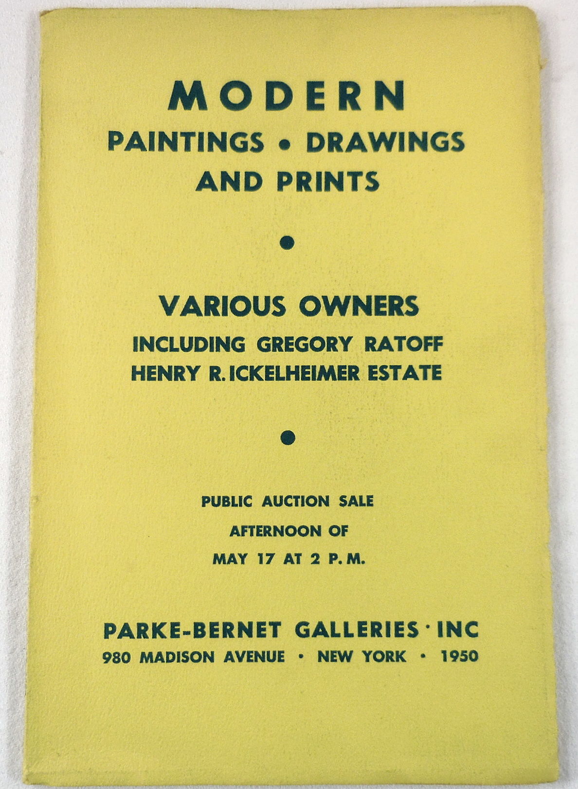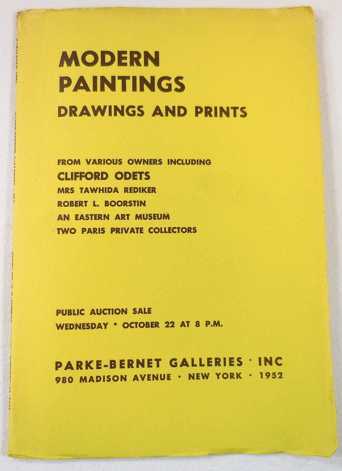 Original 1960 Galleries Auction Catalog Of Fifty Modern