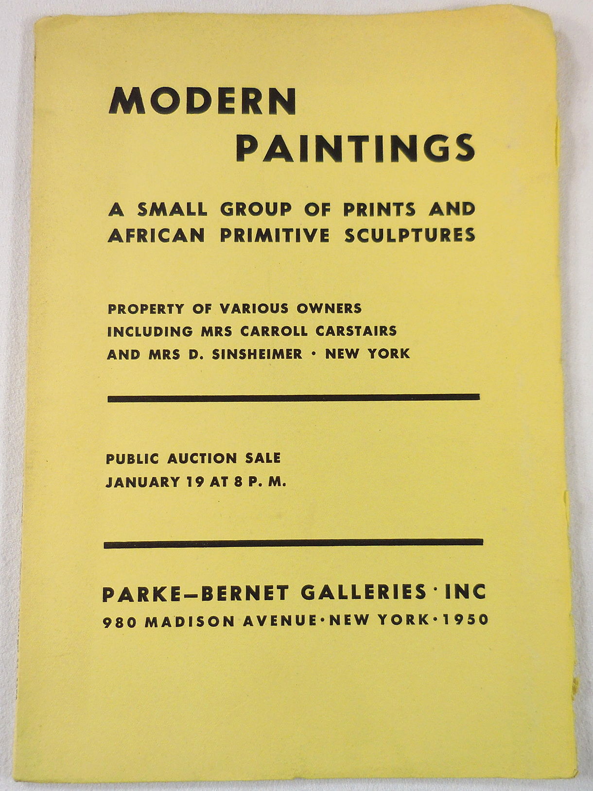 Galleries 1968 Auction Catalog