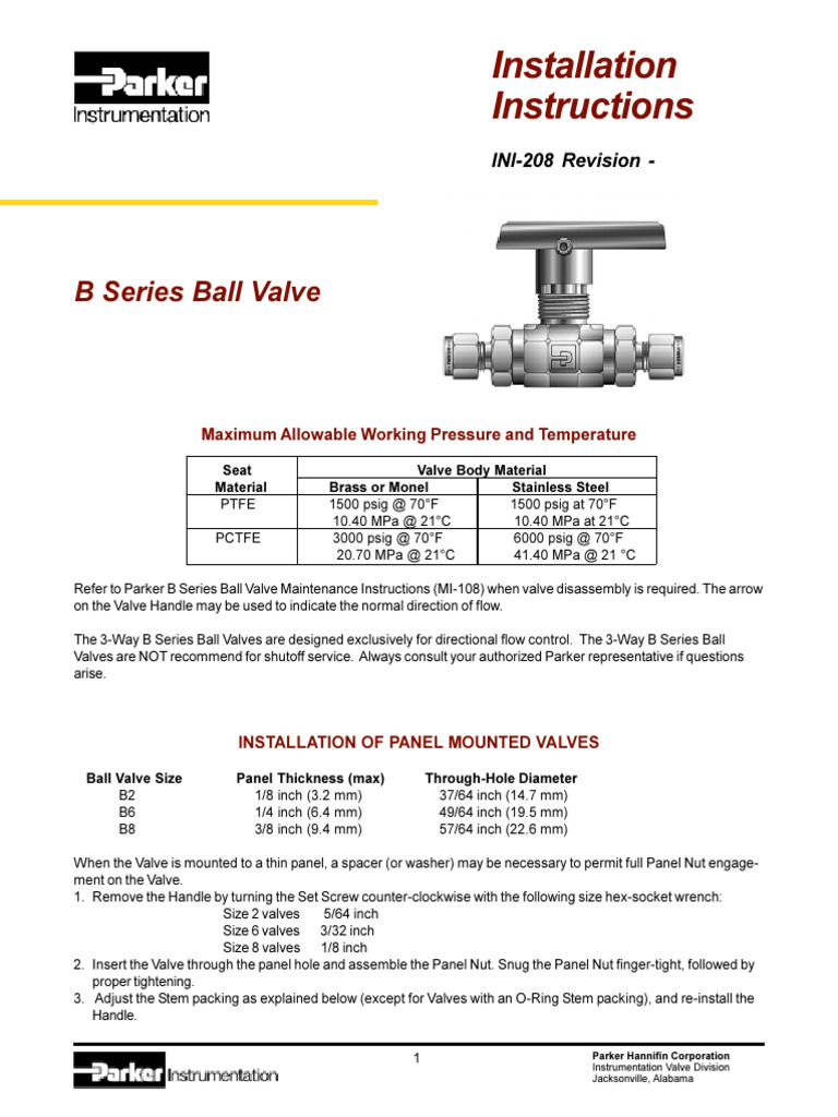 Parker B Series Ball Valves PDF Valve Stainless Steel