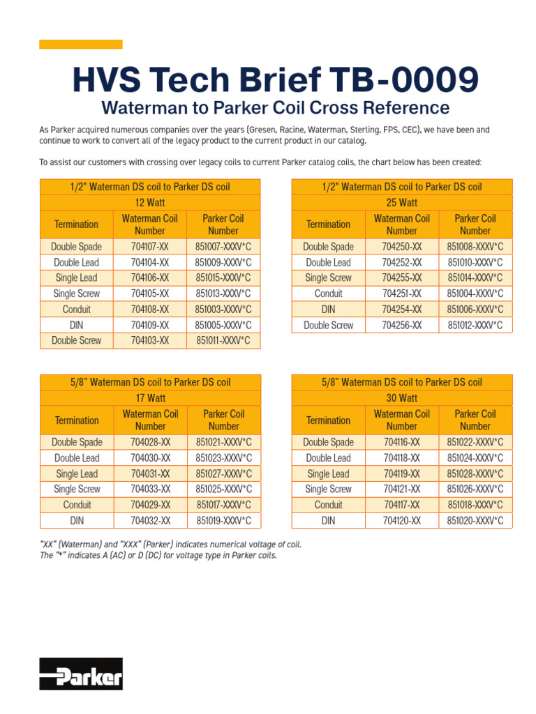 TB 0009 Waterman To Parker Coil Cross Reference PDF Inductor