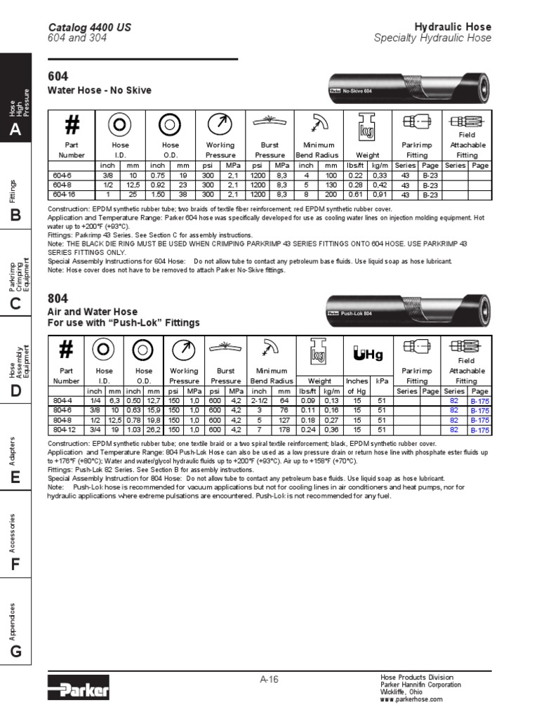604 and 304 Specialty Hydraulic Hose Catalog 4400 US PDF Hose