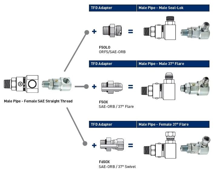 PS12903031212 Parker Hydraulic Inline & 90 Degree Elbow, High