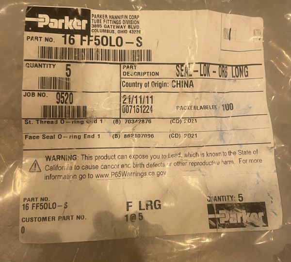 Parker SealLok ORing Face Seal Tube Fittings and Adapters (16PNMLOS