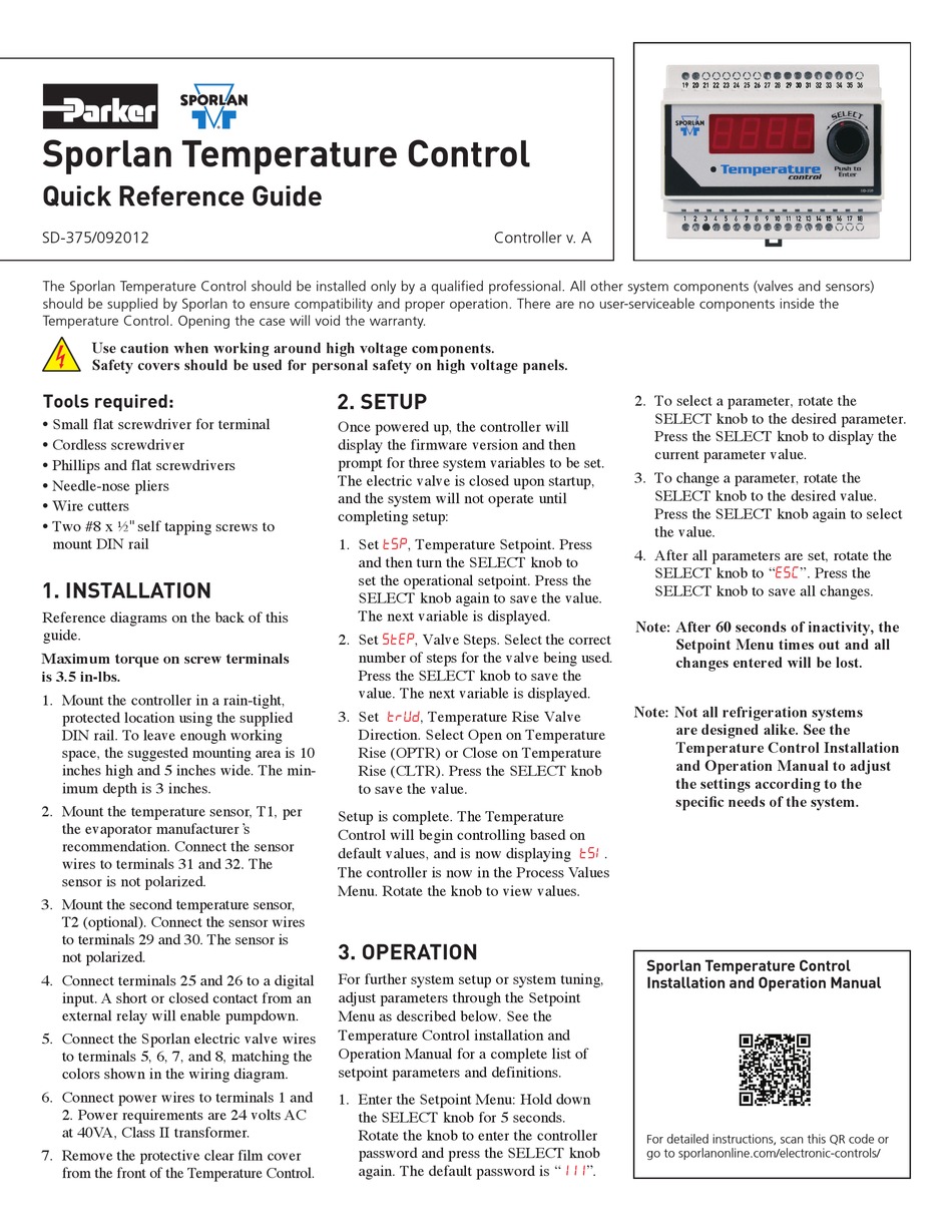 PARKER SPORLAN QUICK REFERENCE MANUAL Pdf Download ManualsLib