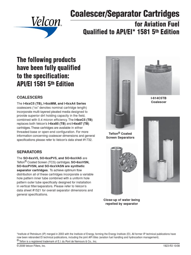 Fillable Online VEL2164 Parker Velcon Filter Separator Cartridges for
