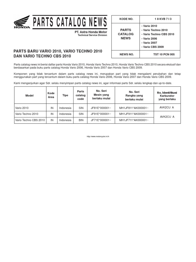 Part Catalog Honda VarioCbs PDF Bisnis Komputer