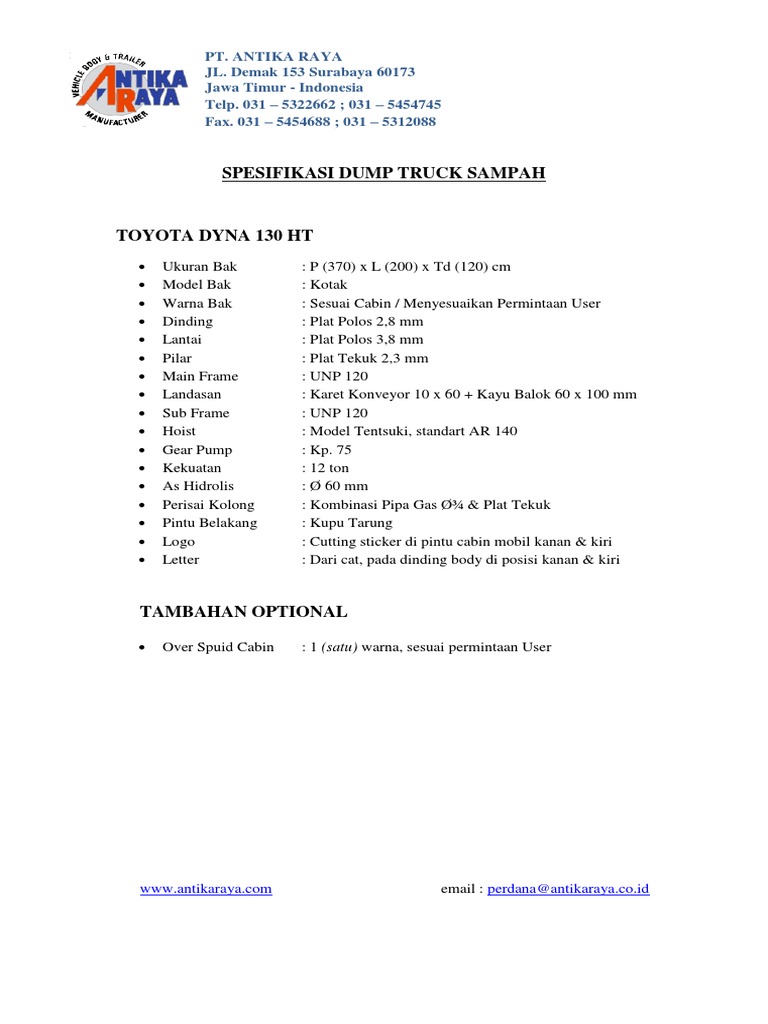 Spek Toyota Dyna 130 HT PDF