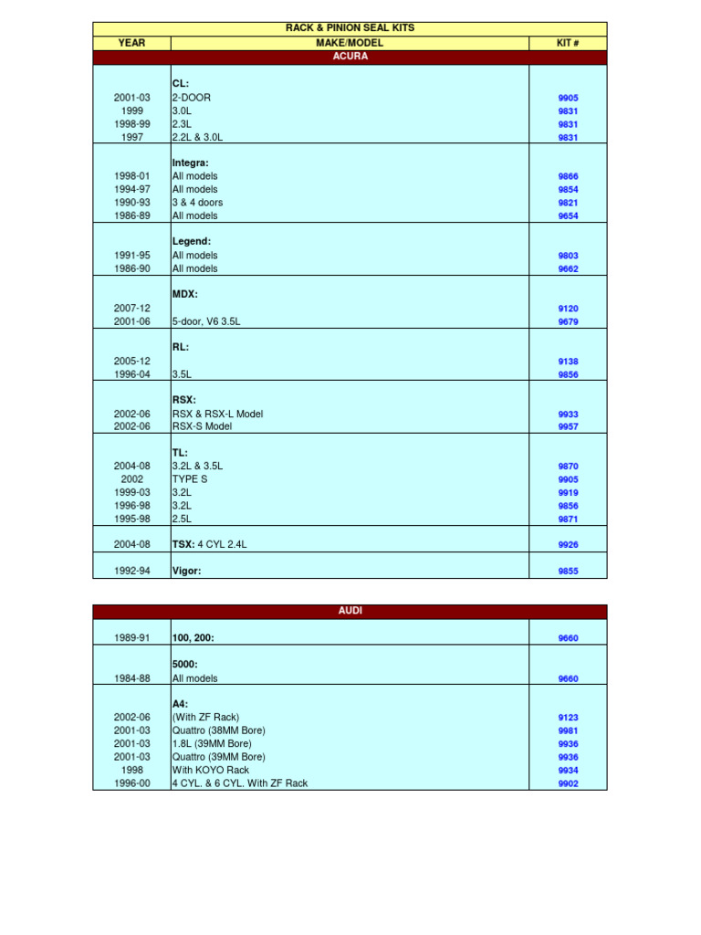 Rack Seal Kits Partcraft PDF Dodge Industries