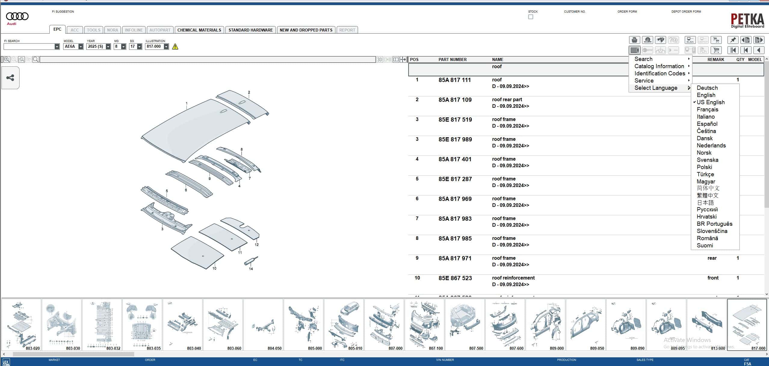 VMware Audi EPC 8.3 08.2025 1616 Spare Parts Catalog