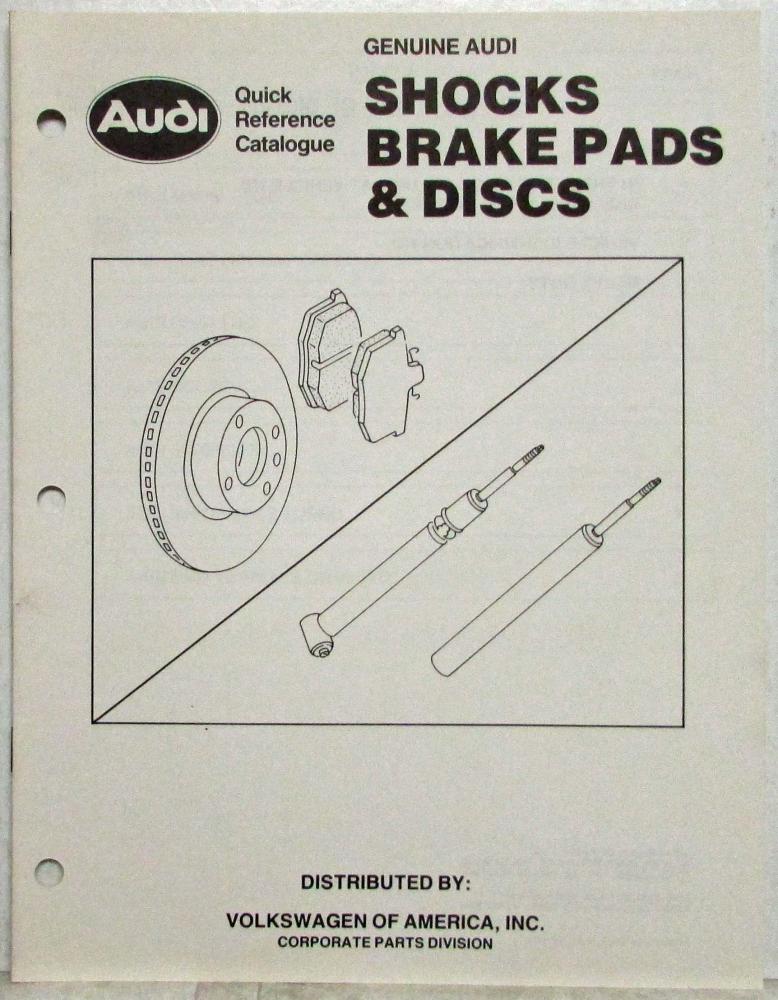 19731987 Audi Shocks Brake Pads and Discs Quick Reference Parts Catalog