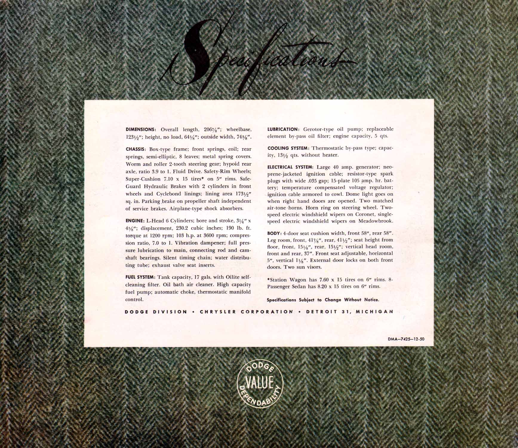 1951 Dodge and Meadowbrook Brochure