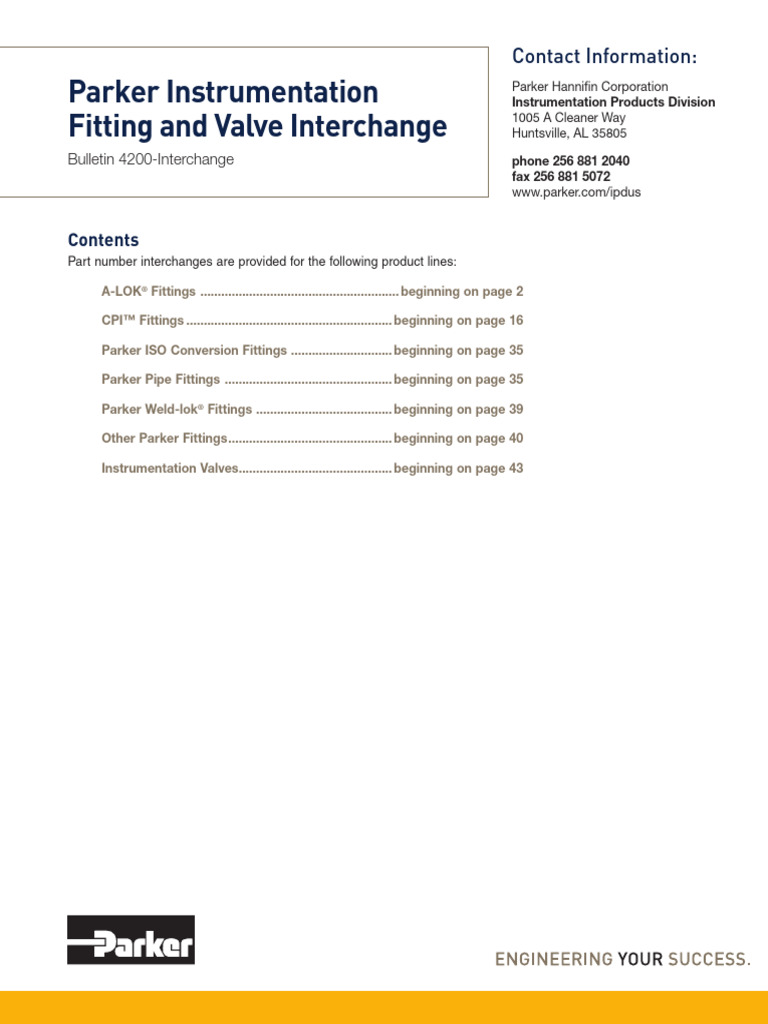 Parker Swagelok Interchange Catalogue PDF