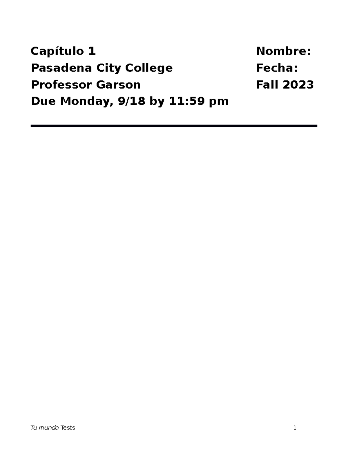 Tu mundo chapter 1 Spanish 1 2023 Fall online Capítulo 1 Nombre