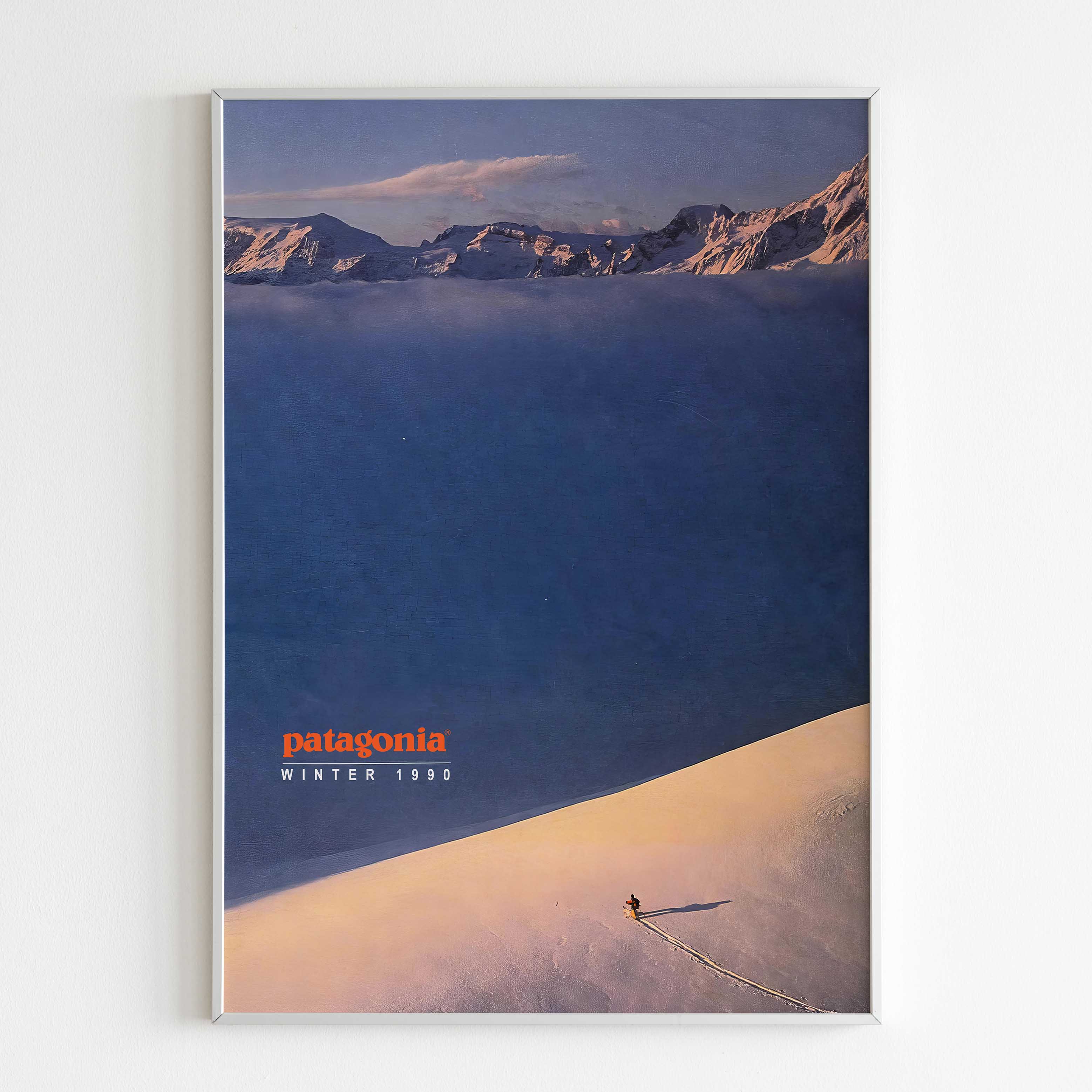 Patagonia Winter 1990 vintage print ad, retro tshirt… Gem