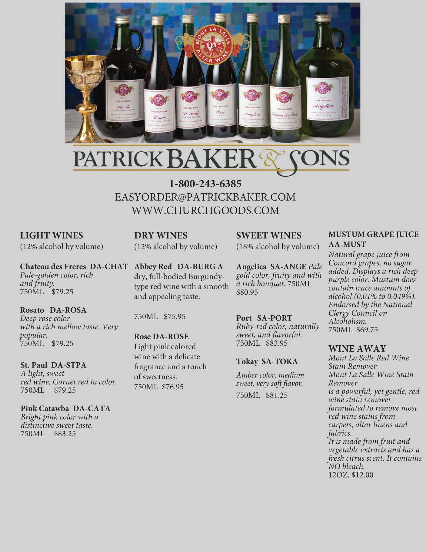 Patrick Baker & Sons, Inc Candle, Wine, Host Catalog September 2023