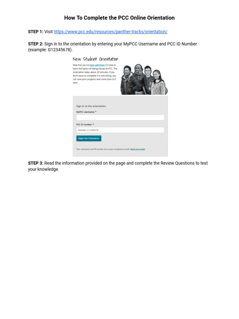 How To Complete The PCC Online Orientation PDF