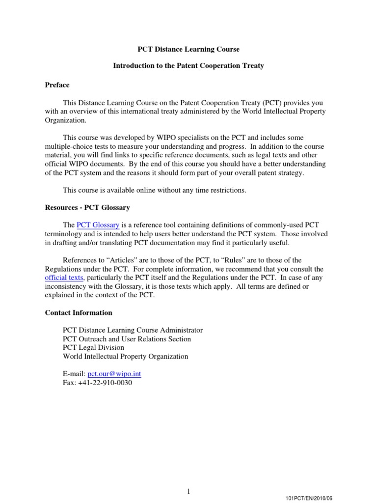 PCT Course Content PDF Patent Application Glossary Of Patent Law
