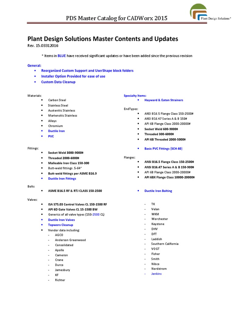 Plant Design Solutions Master Contents and Updates Pds Master Catalog