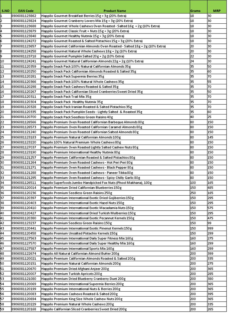 Happilo Gourmet and Premium Nut Snack Product Catalog PDF Nut