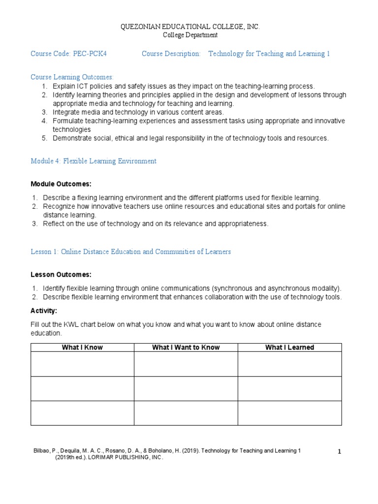Course Code PECPCK4 Course Description Technology For Teaching and