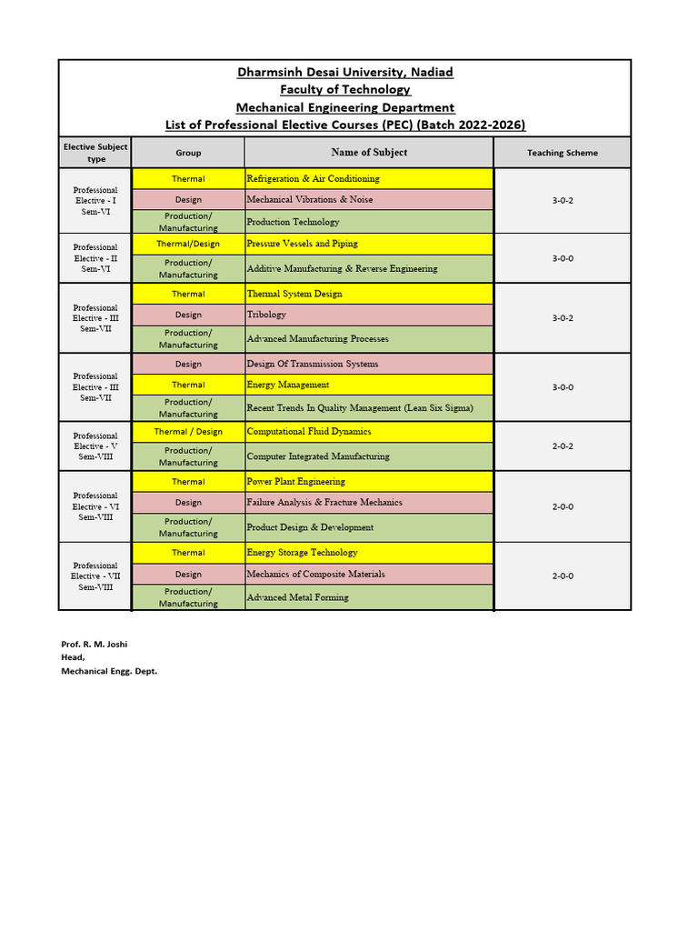 List of Professional Elective Courses (PEC) (Batch 20222026) PDF