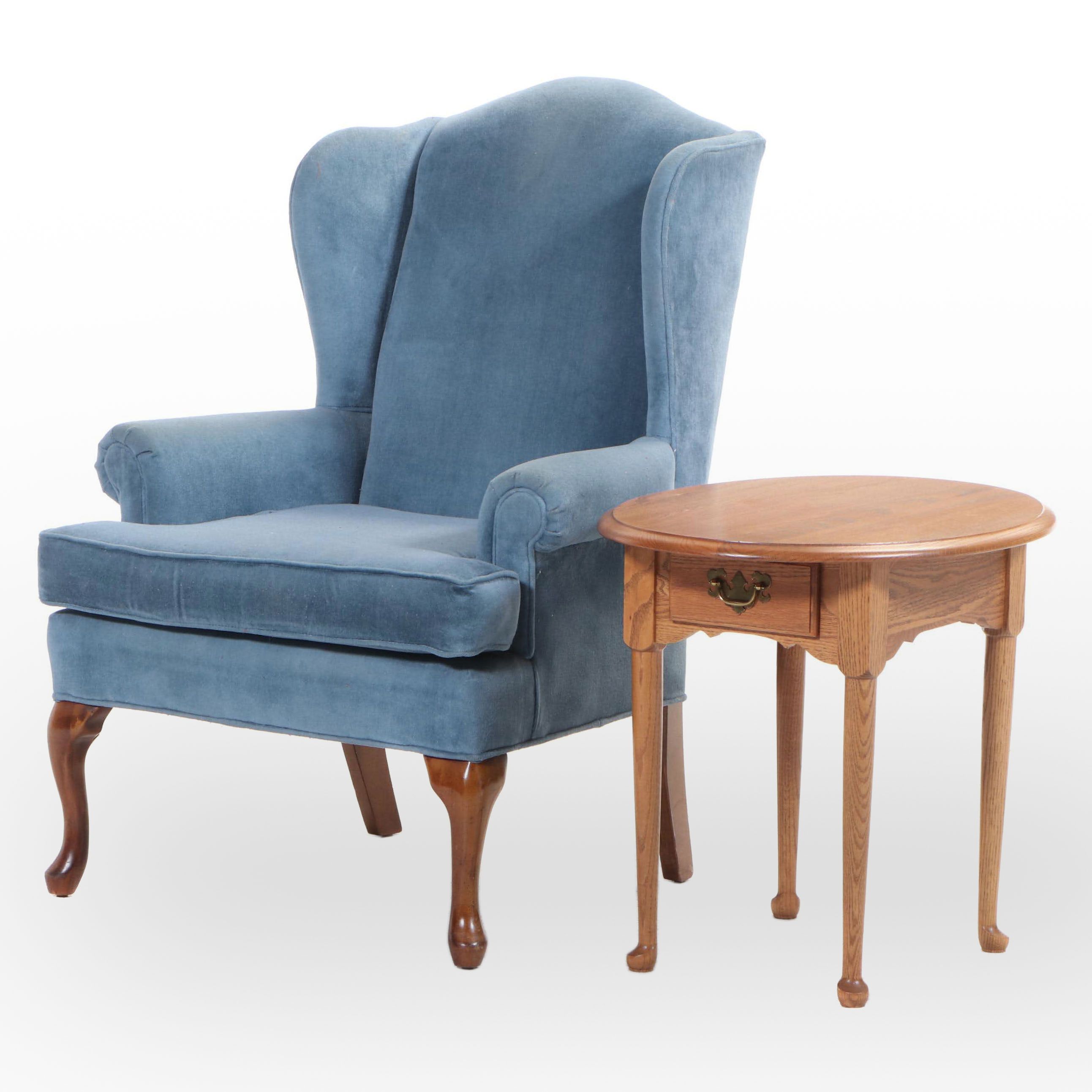 Fairfield Queen Anne Style Wingback Armchair Plus Penns Creek Oak Side