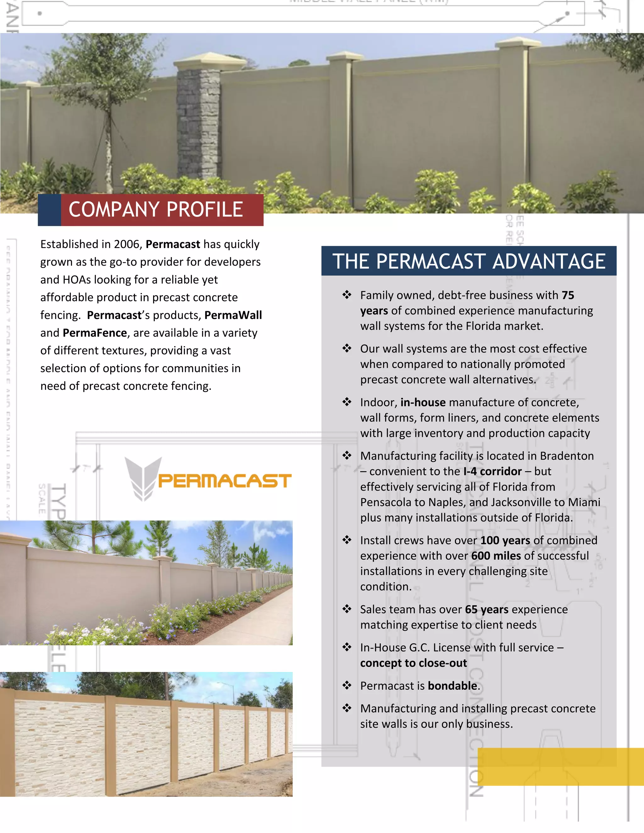 Precast Concrete Walls & Fence Company in Florida Permacast
