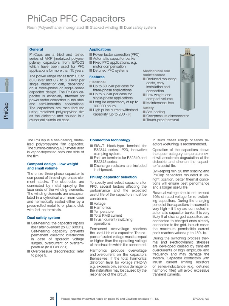 Epcos PFC Catalog 28 PDF Capacitor Components