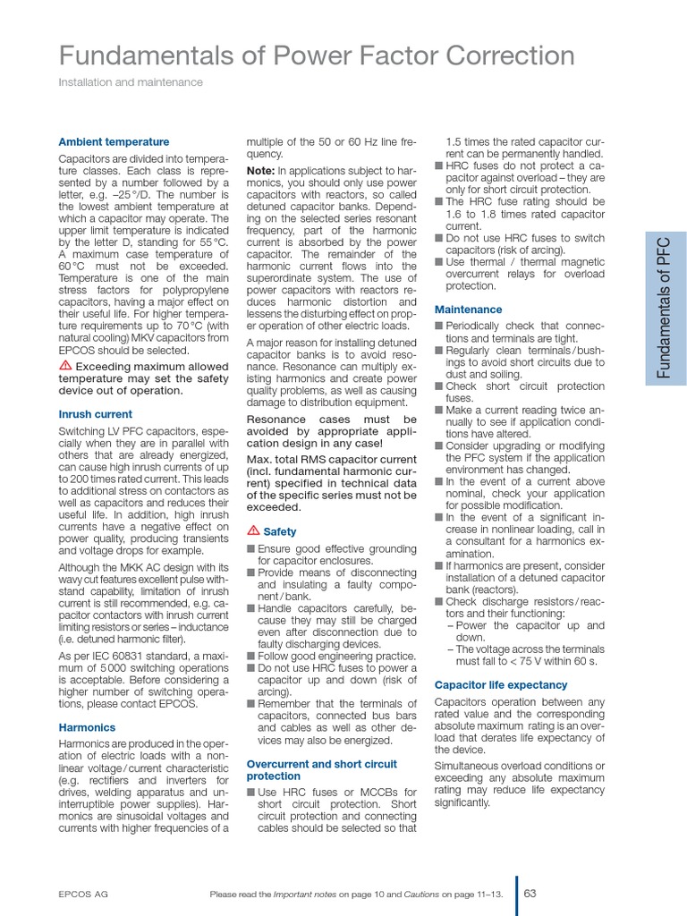 Epcos PFC Catalog 63 PDF Capacitor Electrical Equipment