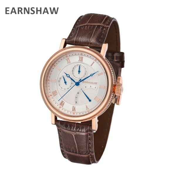 [New]EARNSHAW clock watch ES810106 leather brown/pink gold men watch