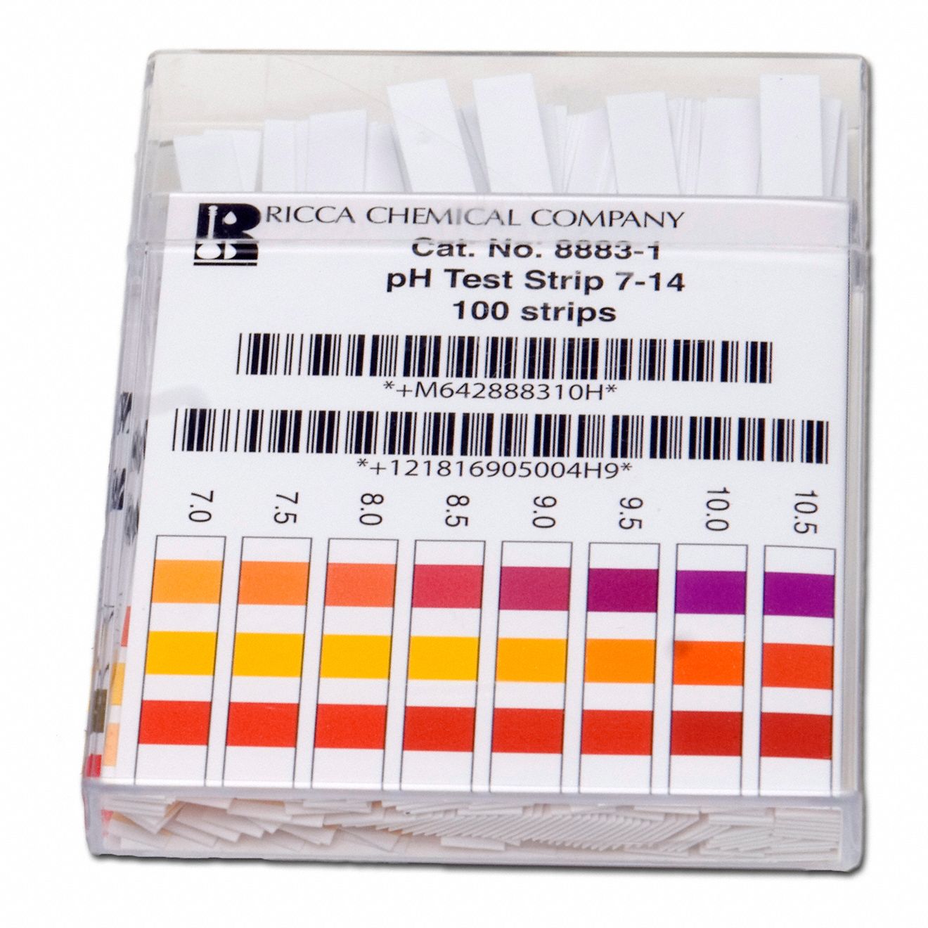 RICCA CHEMICAL pH Test Strips 100 PK Range 7 to 14 pH 45D966