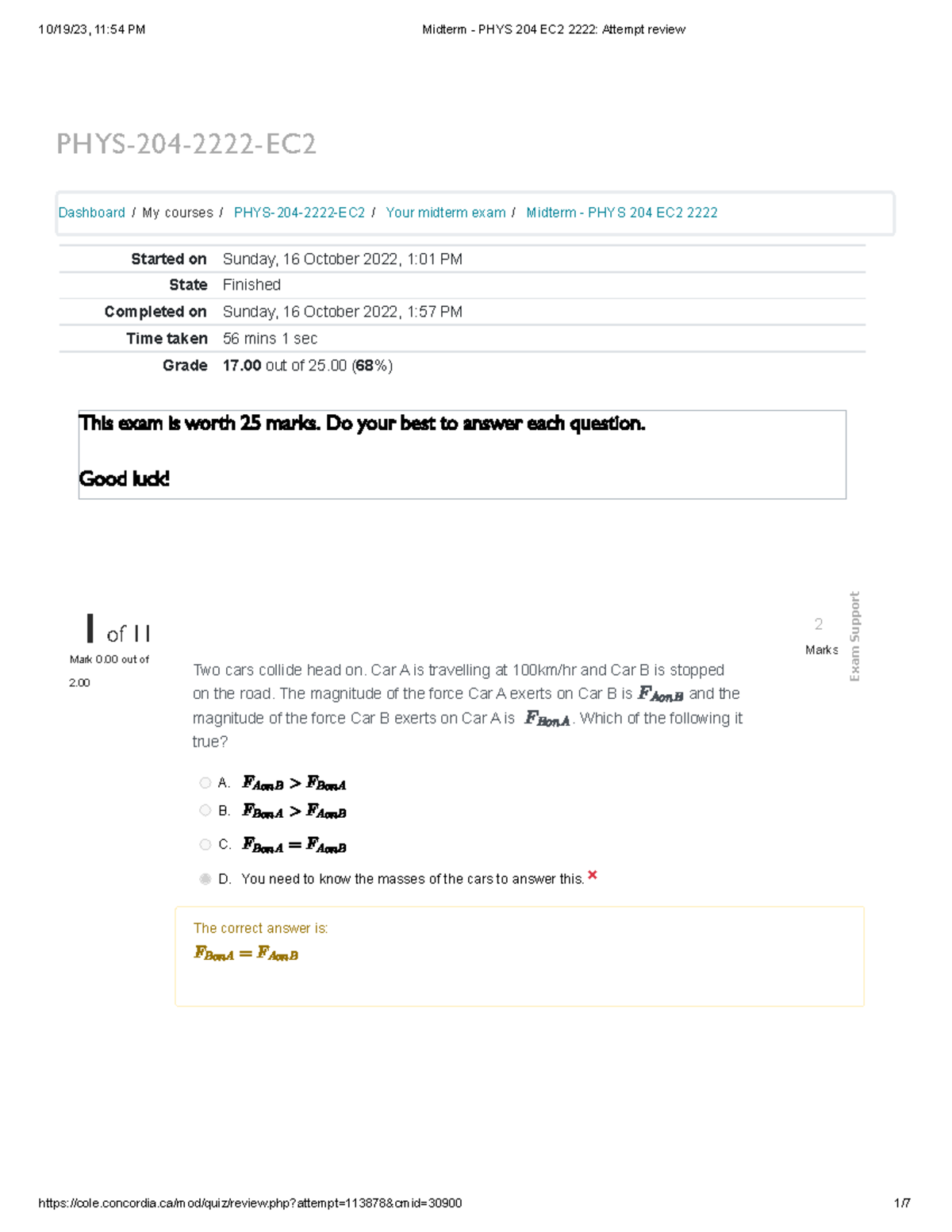 Midterm PHYS 204 Dashboard / My courses / PHYS2042222EC2 / Your