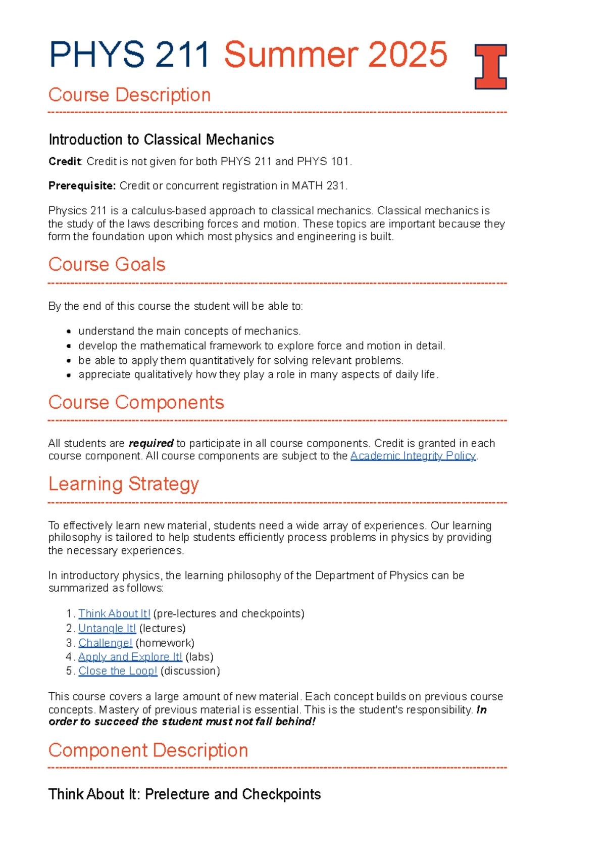 PHYS 212 Summer 2025 Course Overview Electricity & Studocu