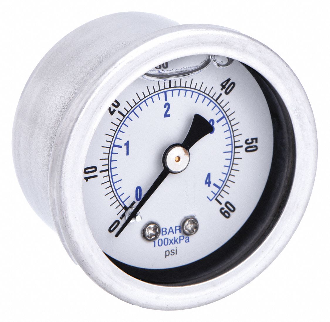 PIC GAUGES, 60 psi to 0 psi / Hg to 60 psi, 1 1/2 in Dial, Industrial
