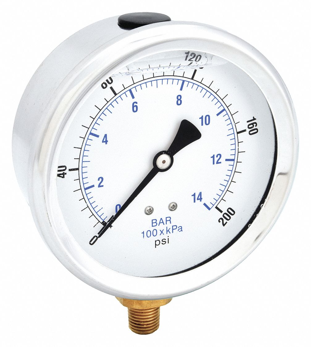 PIC GAUGES, 200 psi to 0 psi / Hg to 200 psi, 4 in Dial, Industrial