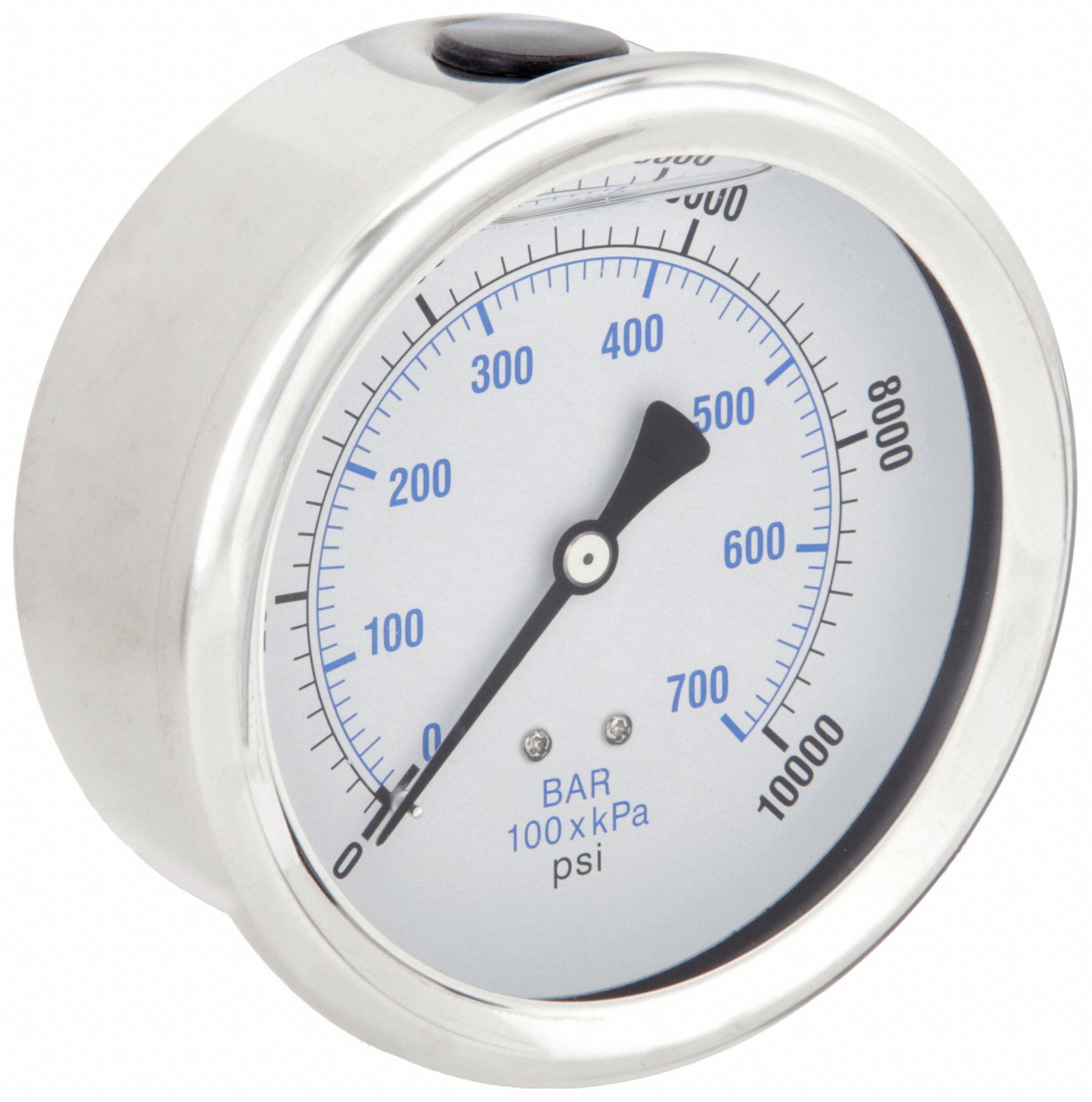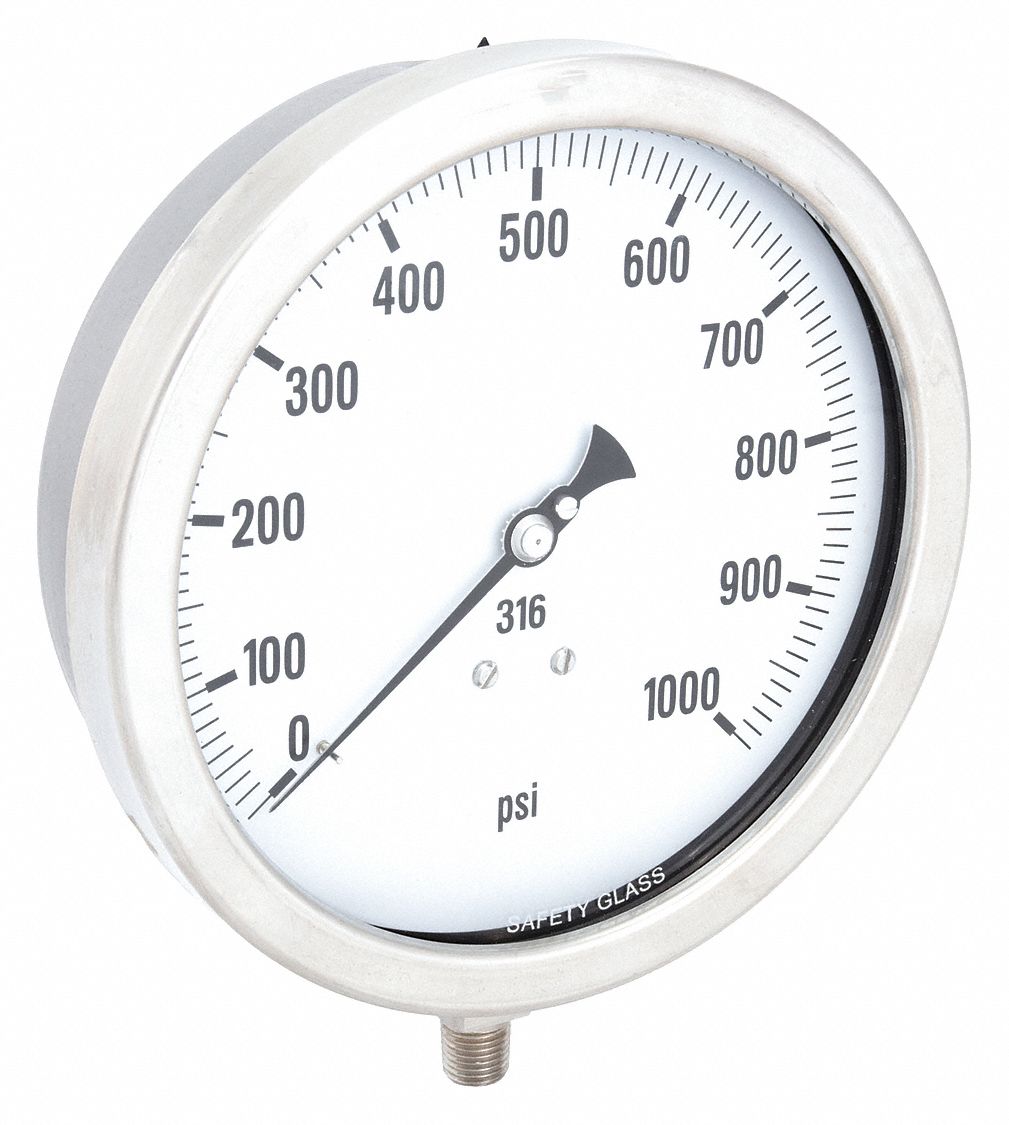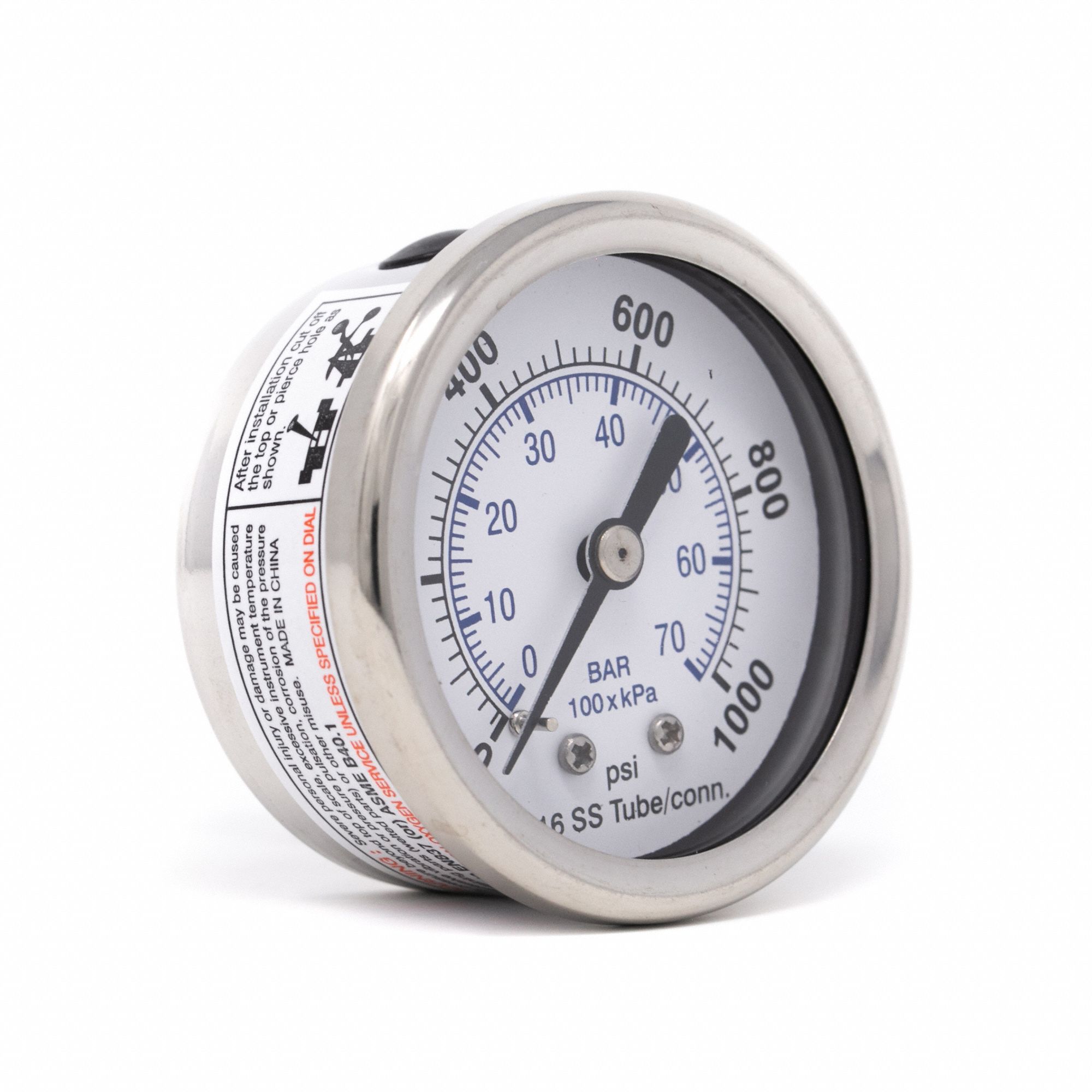 PIC GAUGES, 0 psi to 1,000 psi, 2 in Dial, Industrial Pressure Gauge