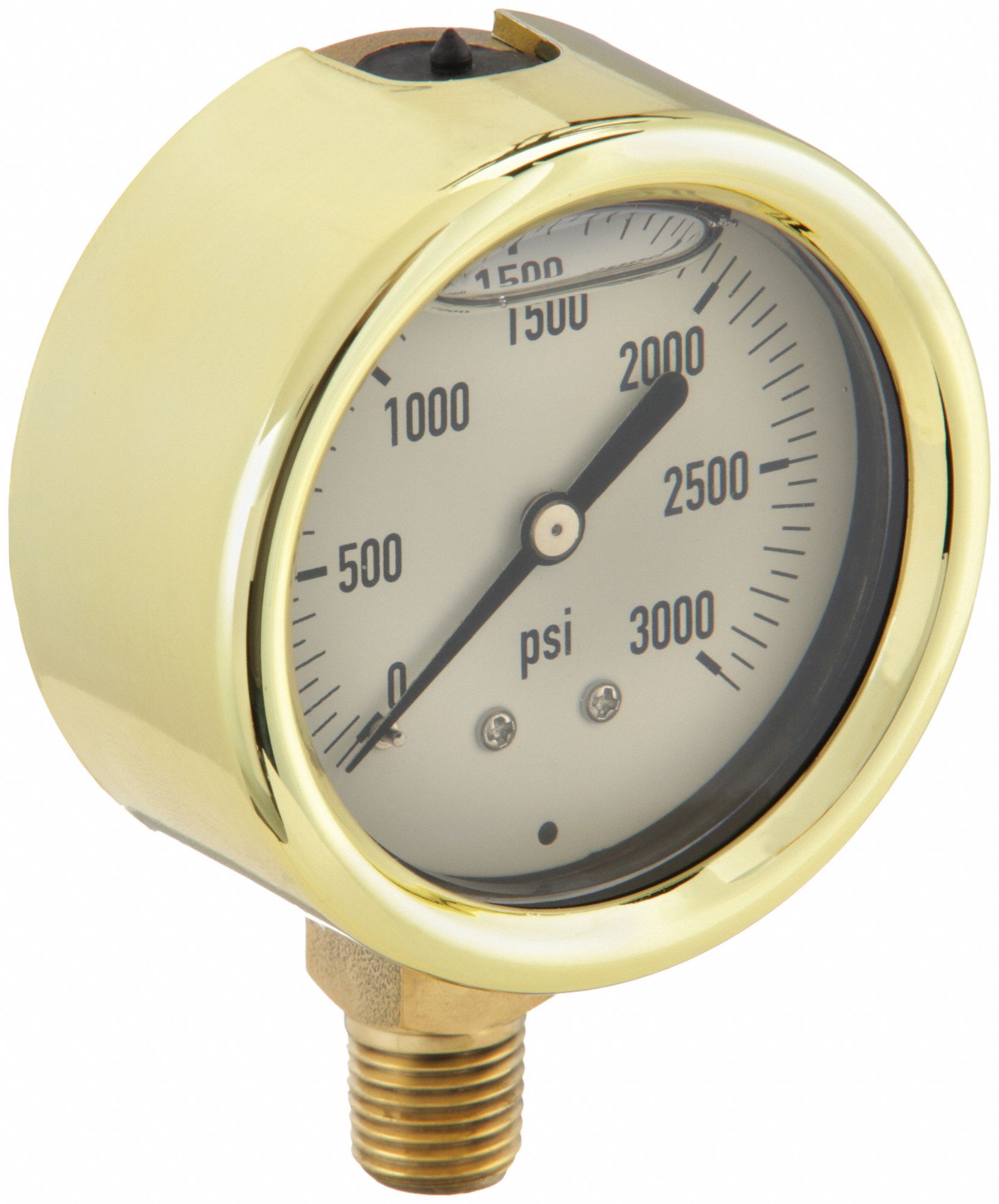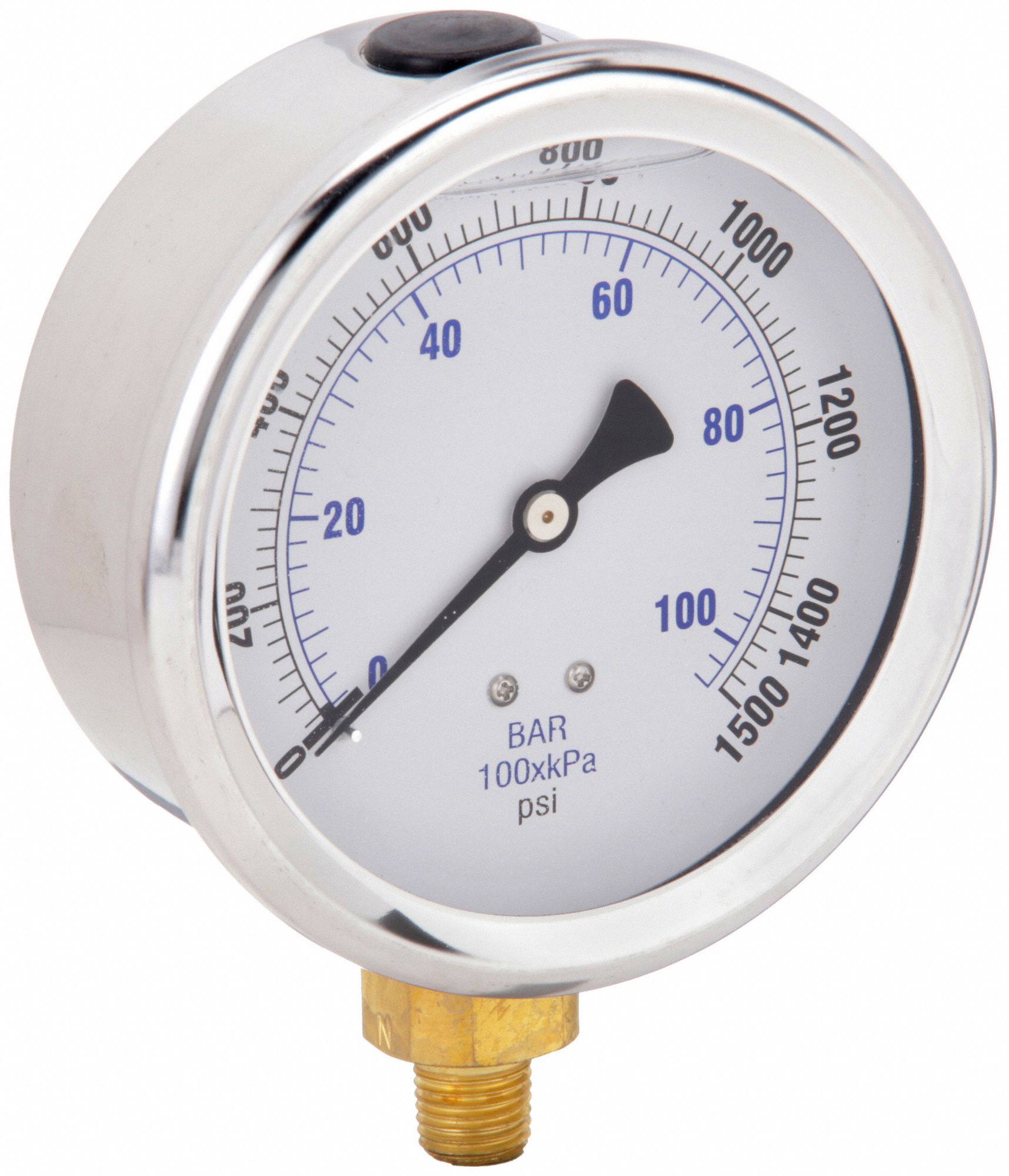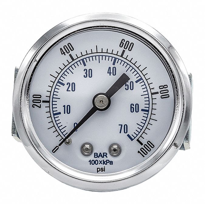 PIC GAUGES, 0 psi to 1,000 psi, 2 in Dial, Industrial Pressure Gauge