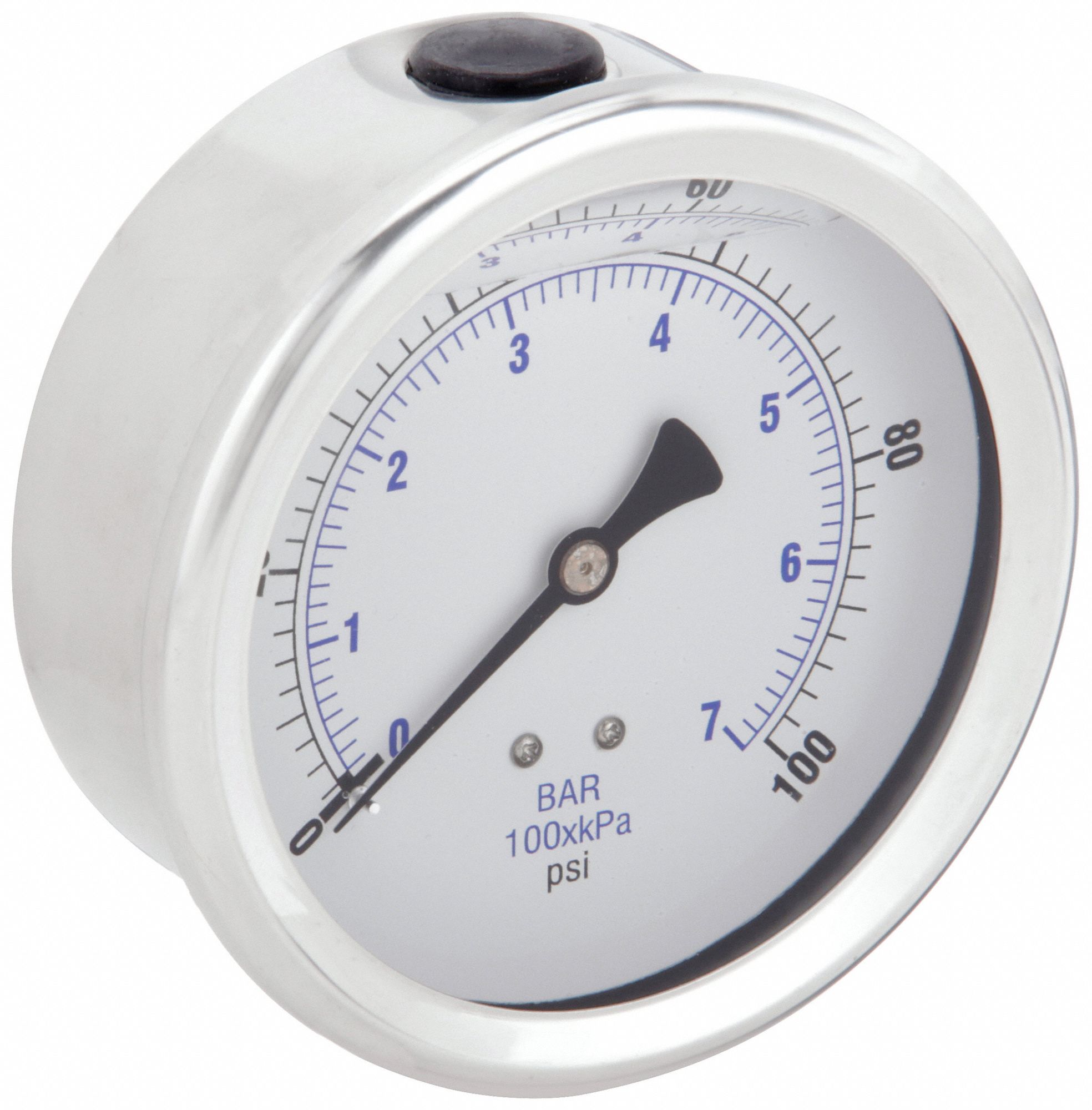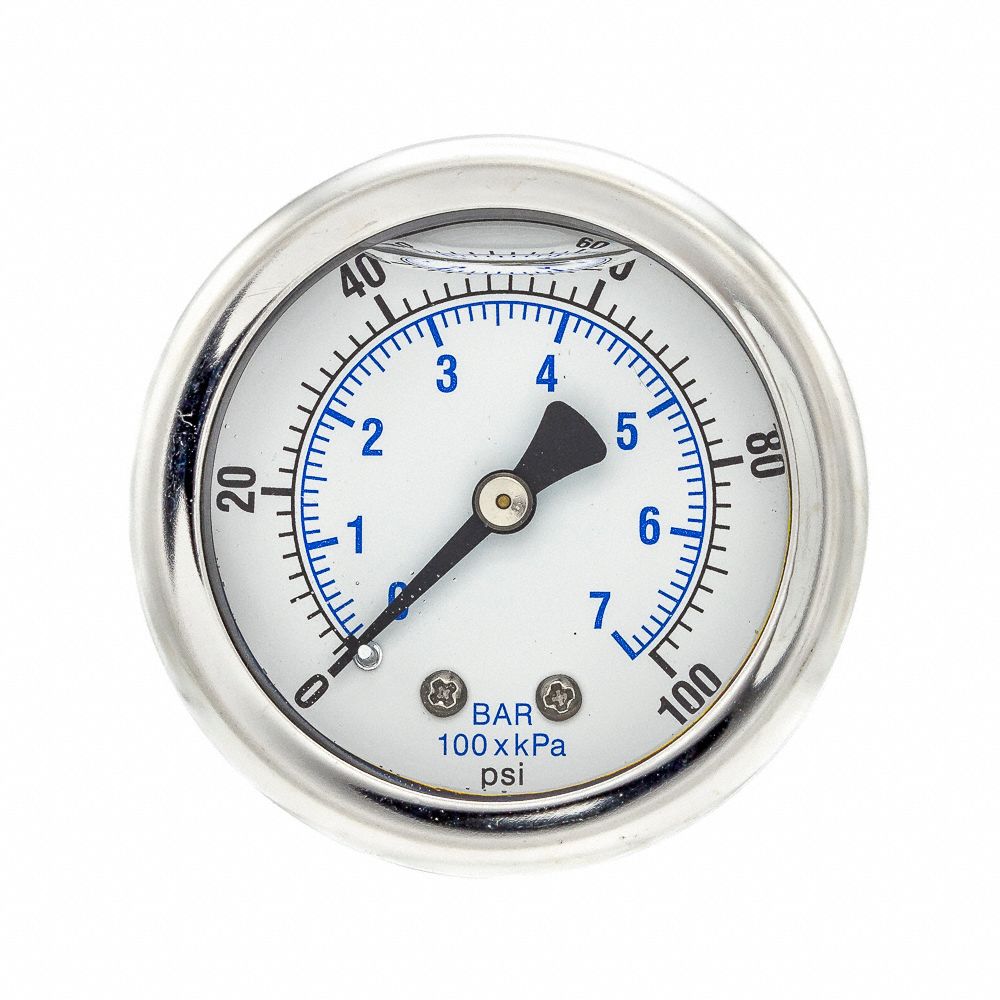 PIC GAUGES, 0 psi to 100 psi, White, Industrial Pressure Gauge 19RZ37