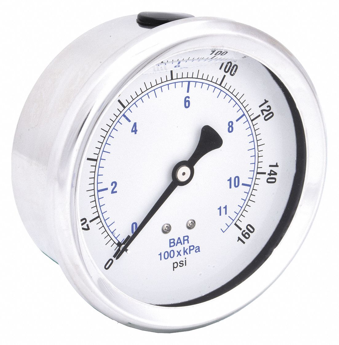 PIC GAUGES, 160 psi to 0 psi / Hg to 160 psi, 4 in Dial, Industrial