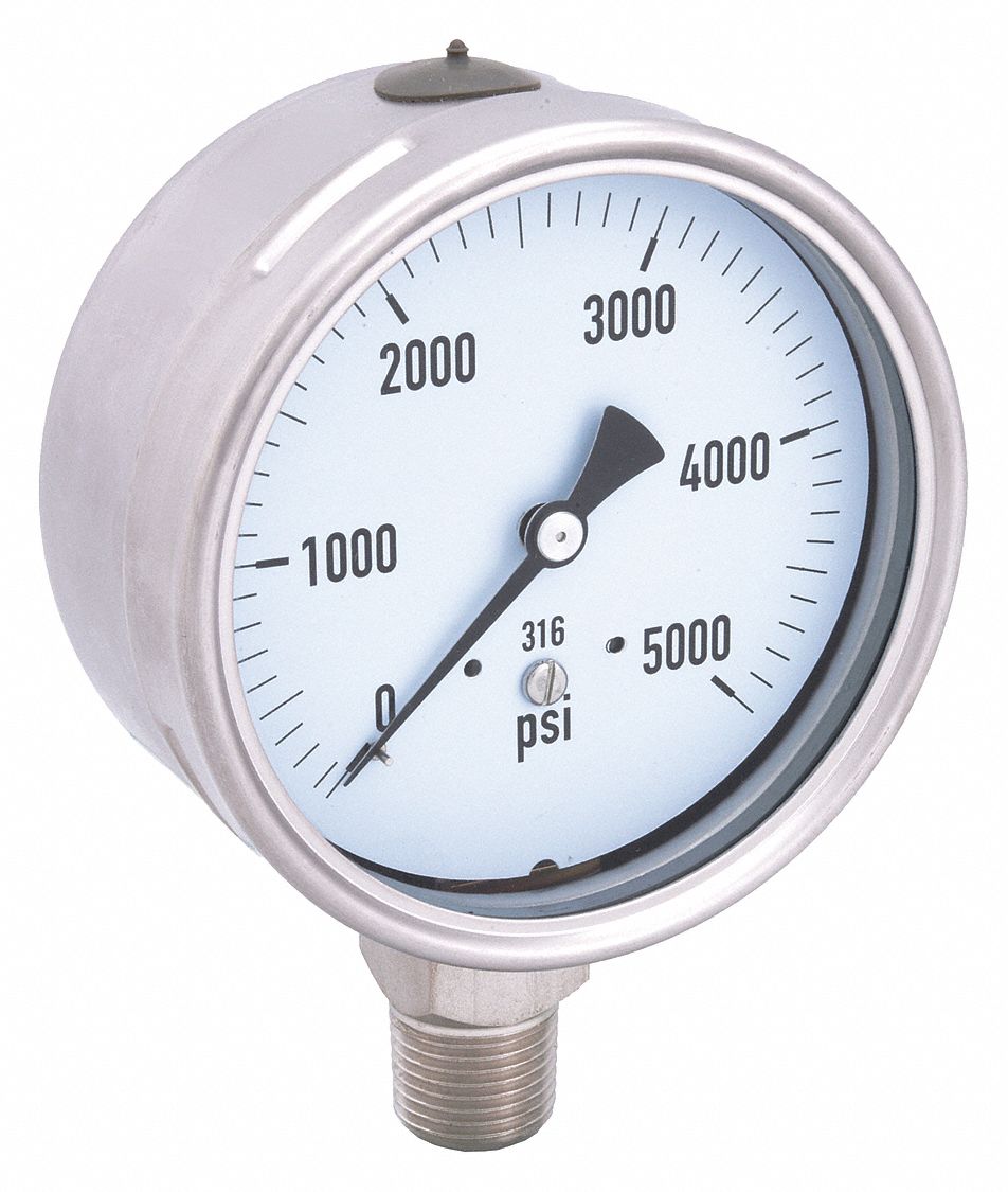 PIC GAUGES, 5,000 psi to 0 psi / Hg to 5,000 psi, 4 in Dial, Industrial